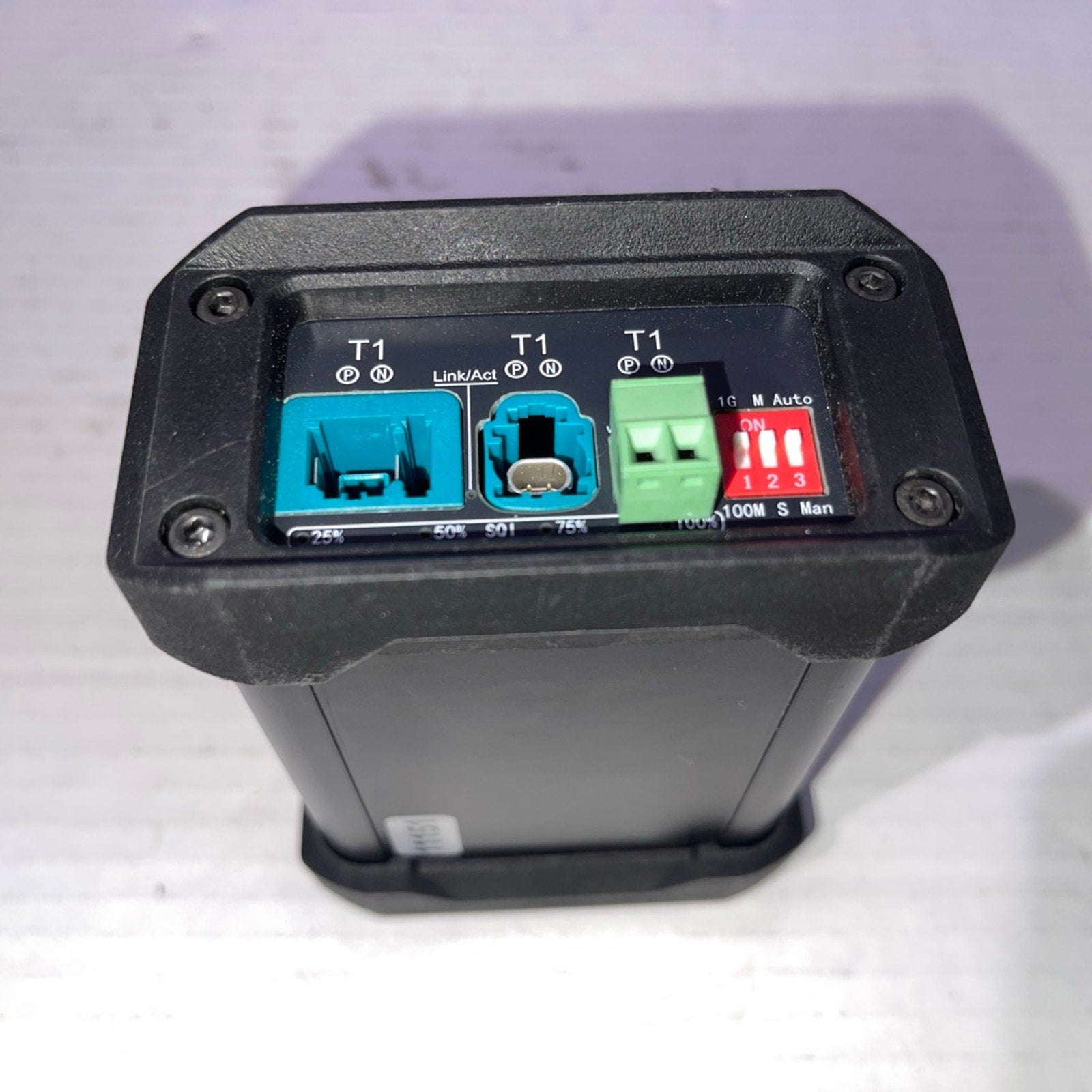 SE1001 Pro 1000/100Base-T1 Automotive Ethernet Media Converter to RJ45 100Mbps/1Gbps - Data Rate: T1 (Automotive) and RJ45 (Common Ethernet) are both compatible with 1000M/100M - T1 interface: supports for TE Connectivity MATEnet and Rosenberger H-MTD connectors, as well as 2-pin terminal block for manual wiring. - Power interface: power via USB-C or 5-32V barrel plug (US AC/DC wall adapter included) - DIP switches: select 100M/1000M, select Master/Slave, select Automatic/Manual - SQI: 4-digit LED displaying signal quality (25%-50%-75%-100%) - Sound prompt: Support (1 short beep prompt when T1 Link is successful) (2 short beeps when T1 Link is disconnected). Can be removed if desired. - Power consumption: the overall