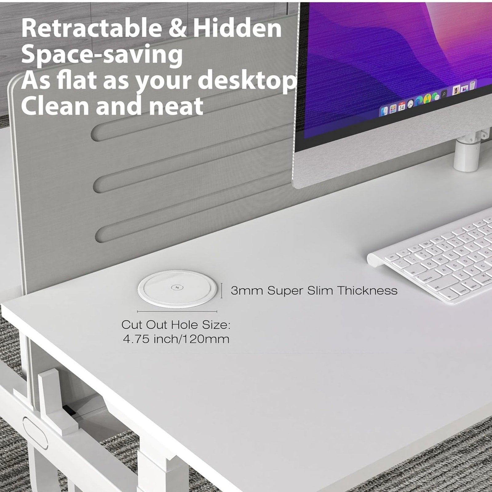 20 Amp Pop Up Countertop Outlet w/ 15W Wireless Charger,Max 65W Power Delivery,4.75" Pop Up Electrical Outlet with 3 Outlets 3 USB Ports for Home OfficeFully automatic retractable design, no more messy cables and plugs. Power up your devices right away from your desk, kitchen island or conference table. Even the pop up countertop outlet is lowered to flat, you can still charge with the wireless charger.