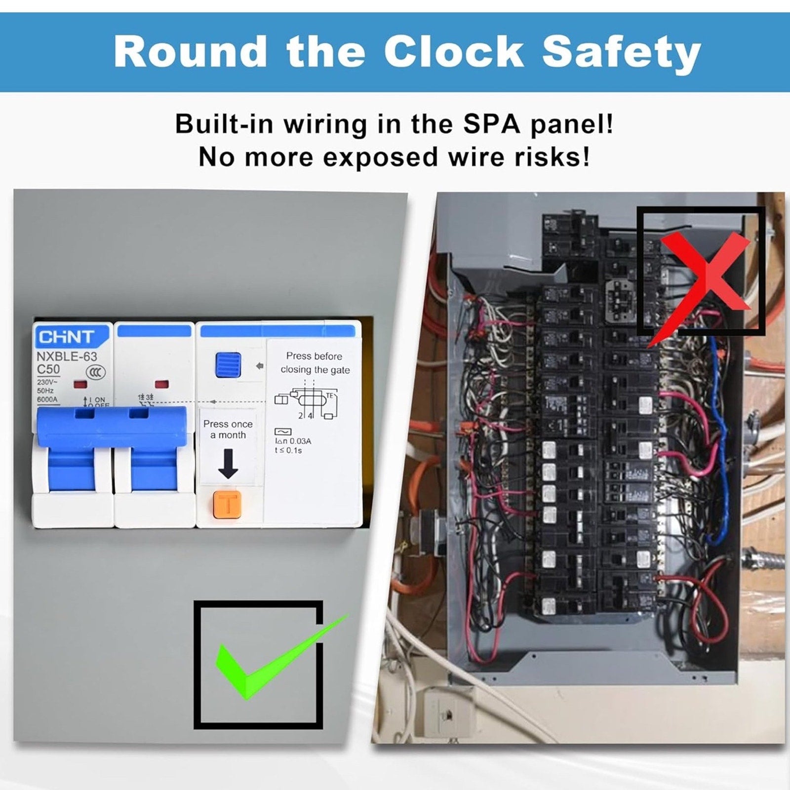 Safety Design: The hot tub disconnect 50 amp gfci breaker, with built-in wiring design, open the protective cover to reveal only the switch part, not only to maintain the neatness and beauty of the equipment connection, but also completely eliminate the operation of the switch, the potential risk of exposed wires