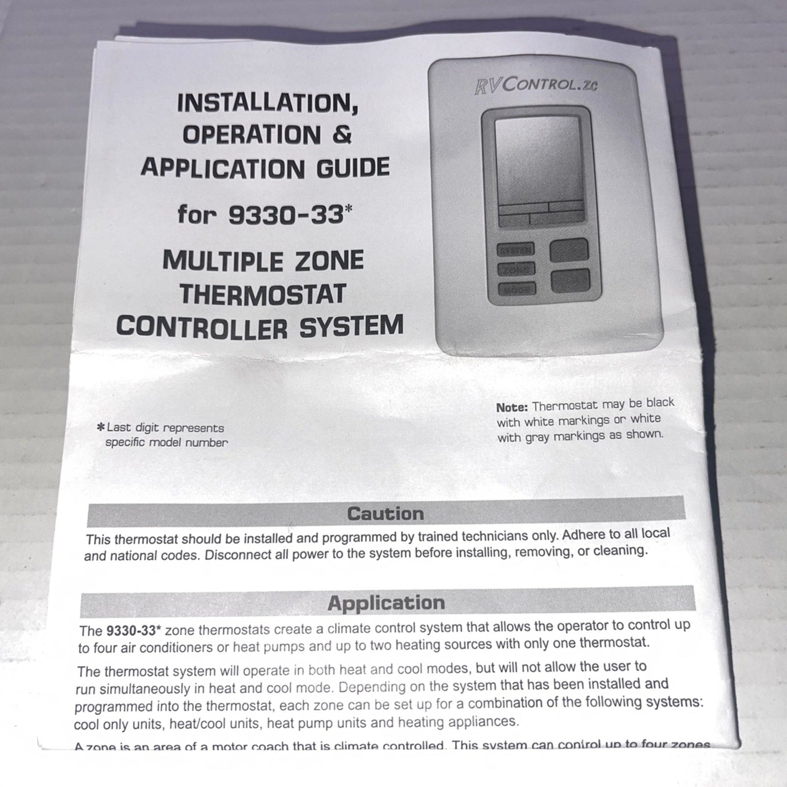 9330A3341 Digital Thermostat for Coleman Mach 9330-33 Series Multiple Zone RV Digital Thermostat,12V Wall Mount Thermostat for RV - Hot/Cool Temperature Control, Black9330A3341 Digital Thermostat – Compatible with Coleman Mach 9330-33 Series RV Digital Thermostat. One thermostat for all your heating and cooling needs! Control up to four rooftop air conditioners or heat pumps, as well as four zones of gas, hydronic, or electric strip heaters and fans, all from one location!