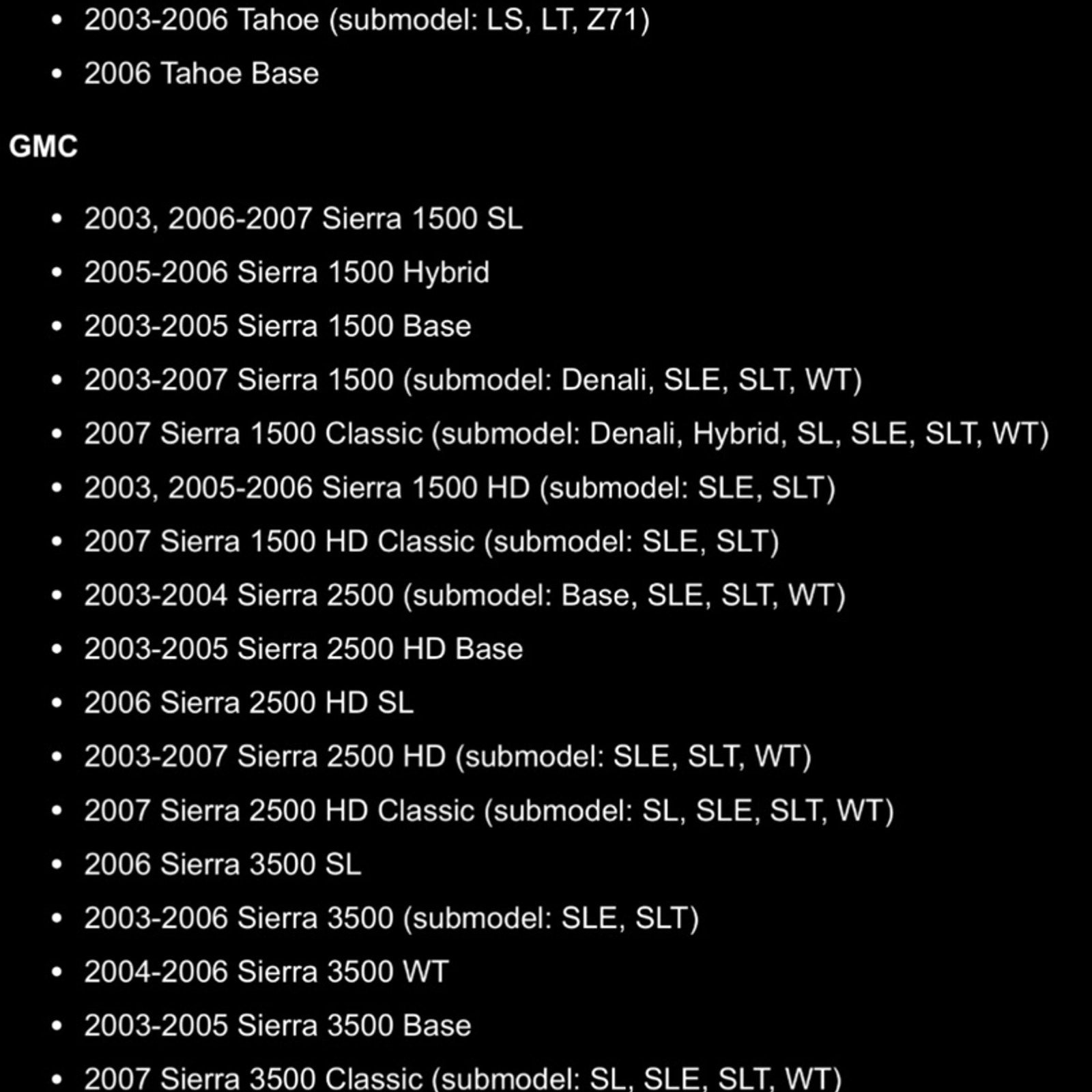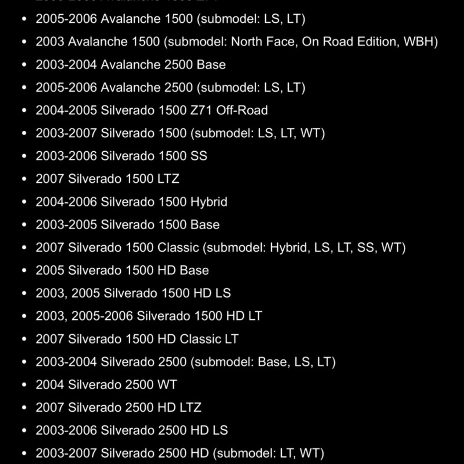 2003-2007 Silverado 1500 (submodel: LS, LT, WT)