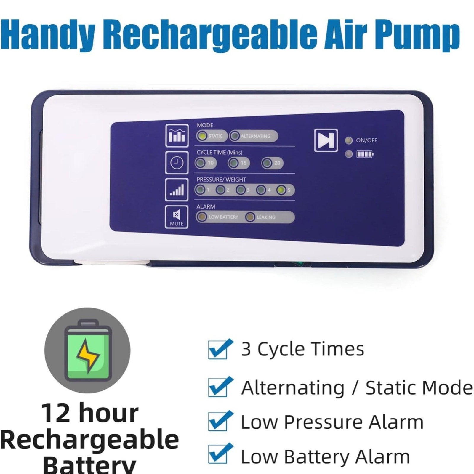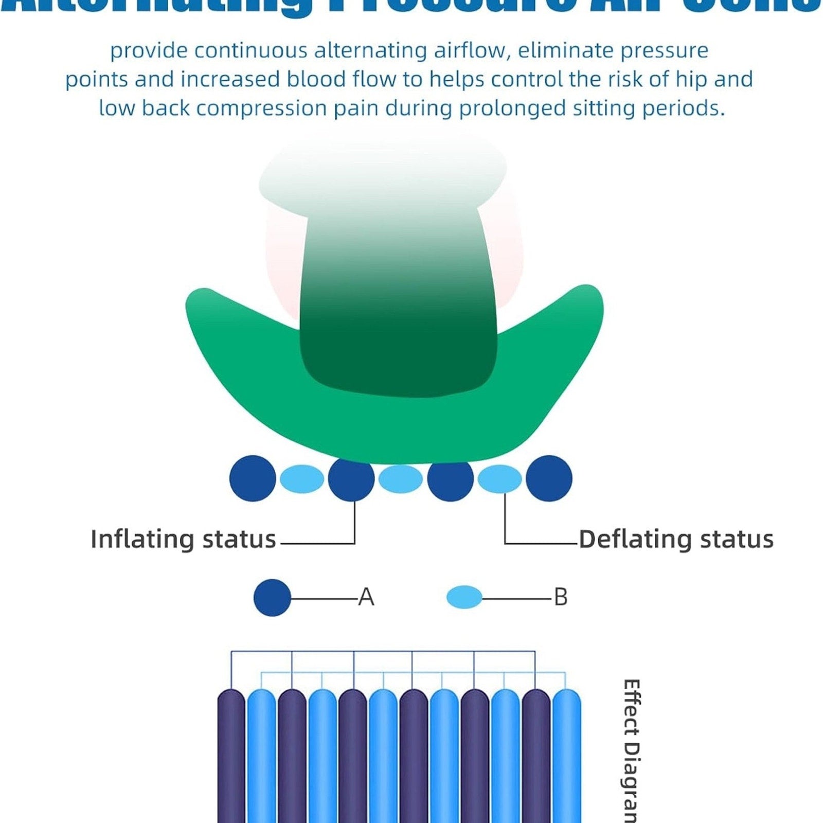 Alternating Pressure Seat Cushion for Wheelchairs with 24 Hour Air Pump Self Inflating Air Cell Cushion Pad for Pressure Relief Ulcer & Bed Sore Prevention Relieve Coccyx Tailbone PainPrevents Bedsores & Relieves Sciatica: Specifically designed alternating pressure system prevents bedsores, ulcers, and relieves sciatic nerve pain during prolonged sitting.
