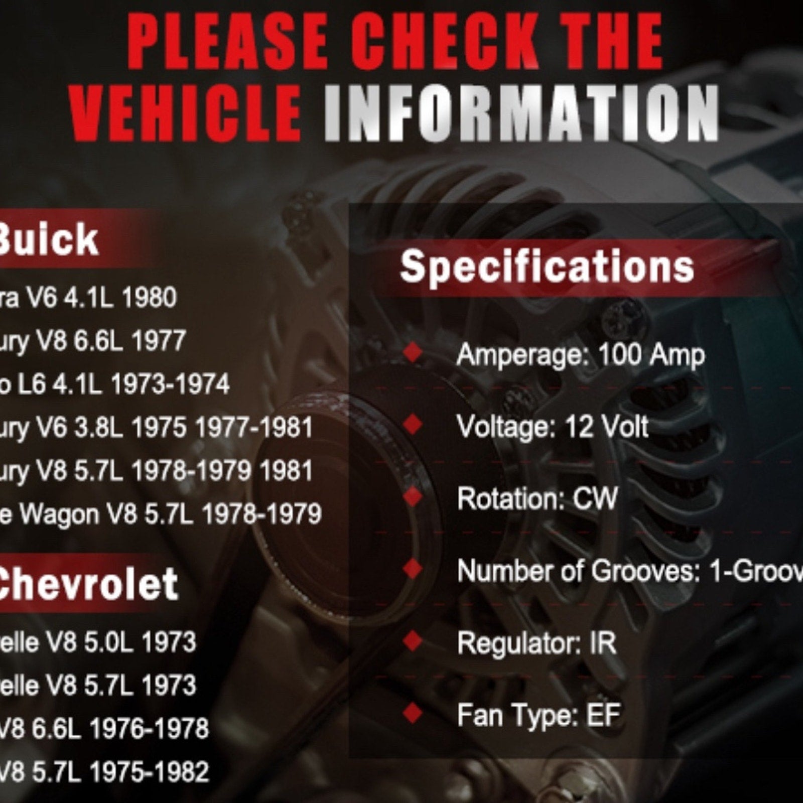 Alternator for Chevy One Wire 10SI SBC BBC GM, 105 Amp/12 Volt Electrical ADR0325 7127-SE105 400-12340 20-102-7REPLACED OEM NUMBERS - 7127-SE105, ADR0335, 400-12340, 20-102-7. Manufactured by OEM Specifications with latest engineering & charging technology, Full Functionality & Superior Performance Alternator perfectly fit your vehicle