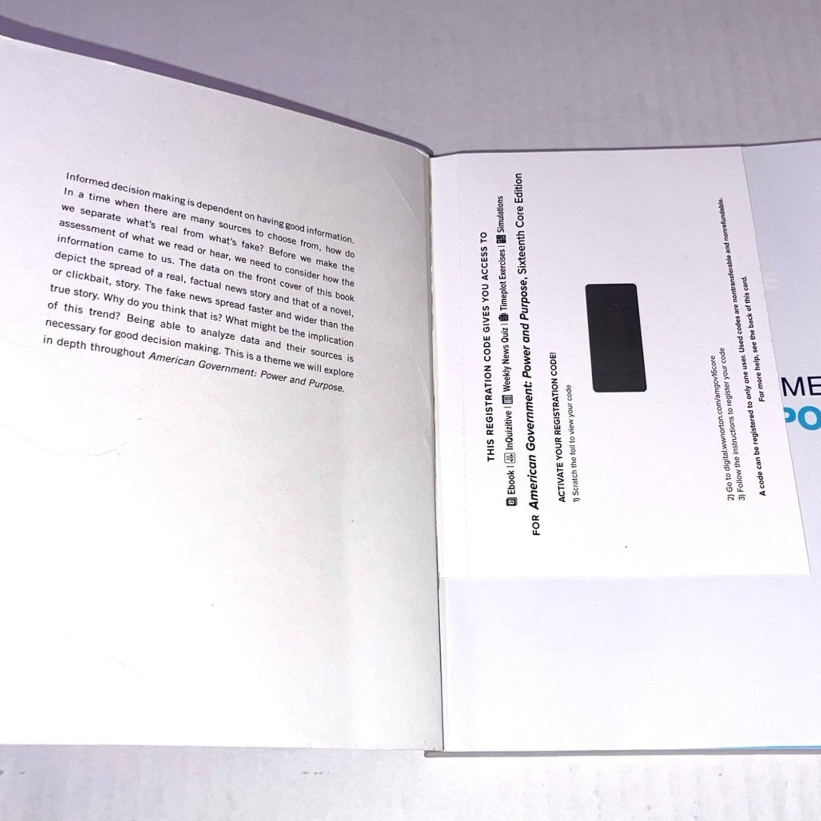 American Government: Power and Purpose Core Sixteenth Edition NEW ONLINE CODE ISBN-13: 978-0393538946, ISBN-10: 039353894X