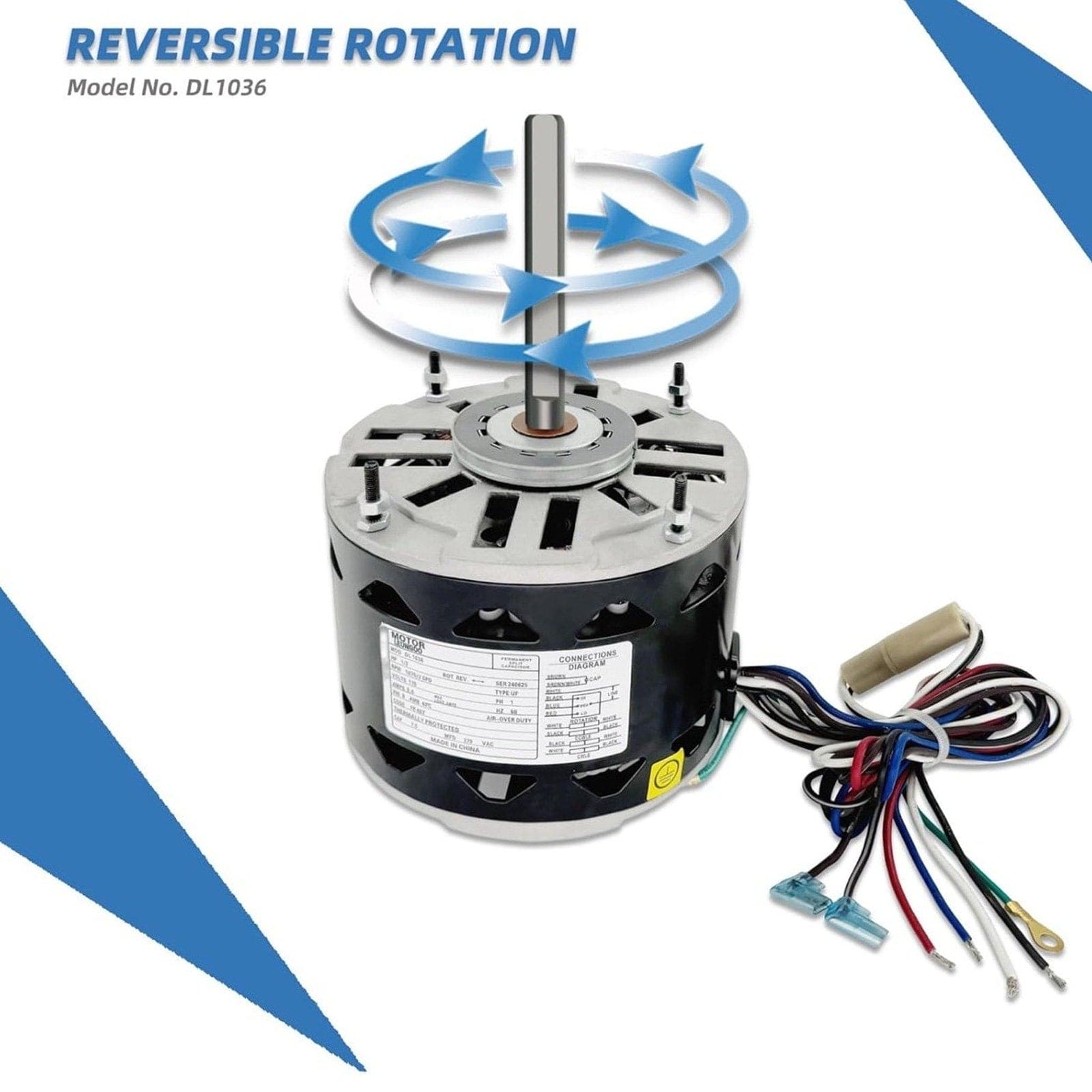 DL1036 Blower Fan Motor-1/3 HP 1075 RPM, 3 Speed, 115V A.O. Smith 323P919,F48H07A01/Fasco D727/GE 3930//Emerson 2482/Dayton 3M653 48 Frame Leungoo1/3HP, 1075 RPM/ 3 Speed, 5.4A, 115V, Include 1 pcs capacitor 7.5μF/370V, 48 Frame.