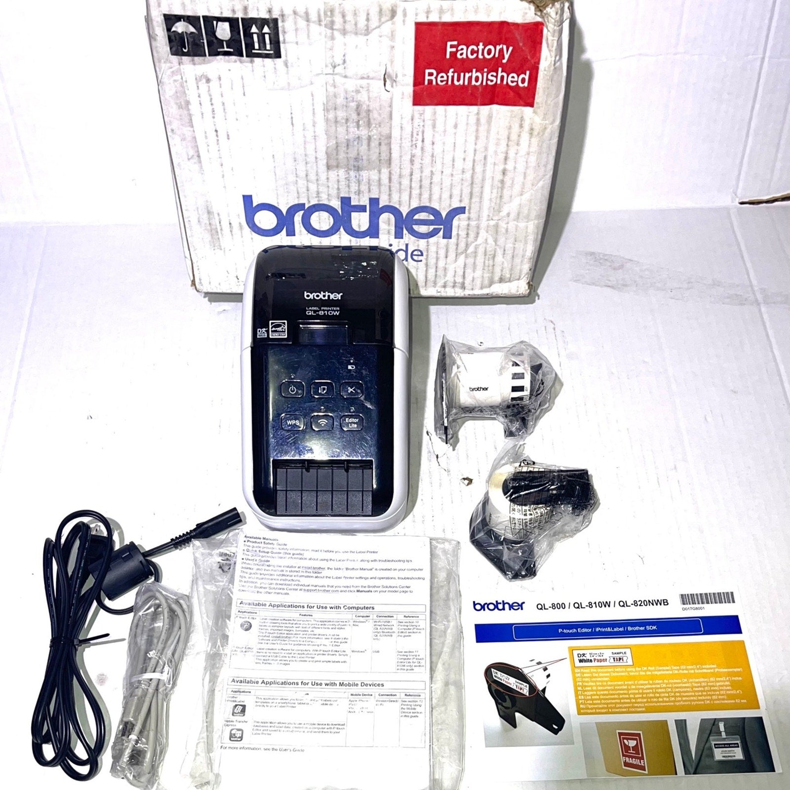 Brother RQL-810W- (QL-810W) Ultra-Fast Label Printer Wireless Networking White FACTORY REFURBISHEDPOWER CORD INCLUDED