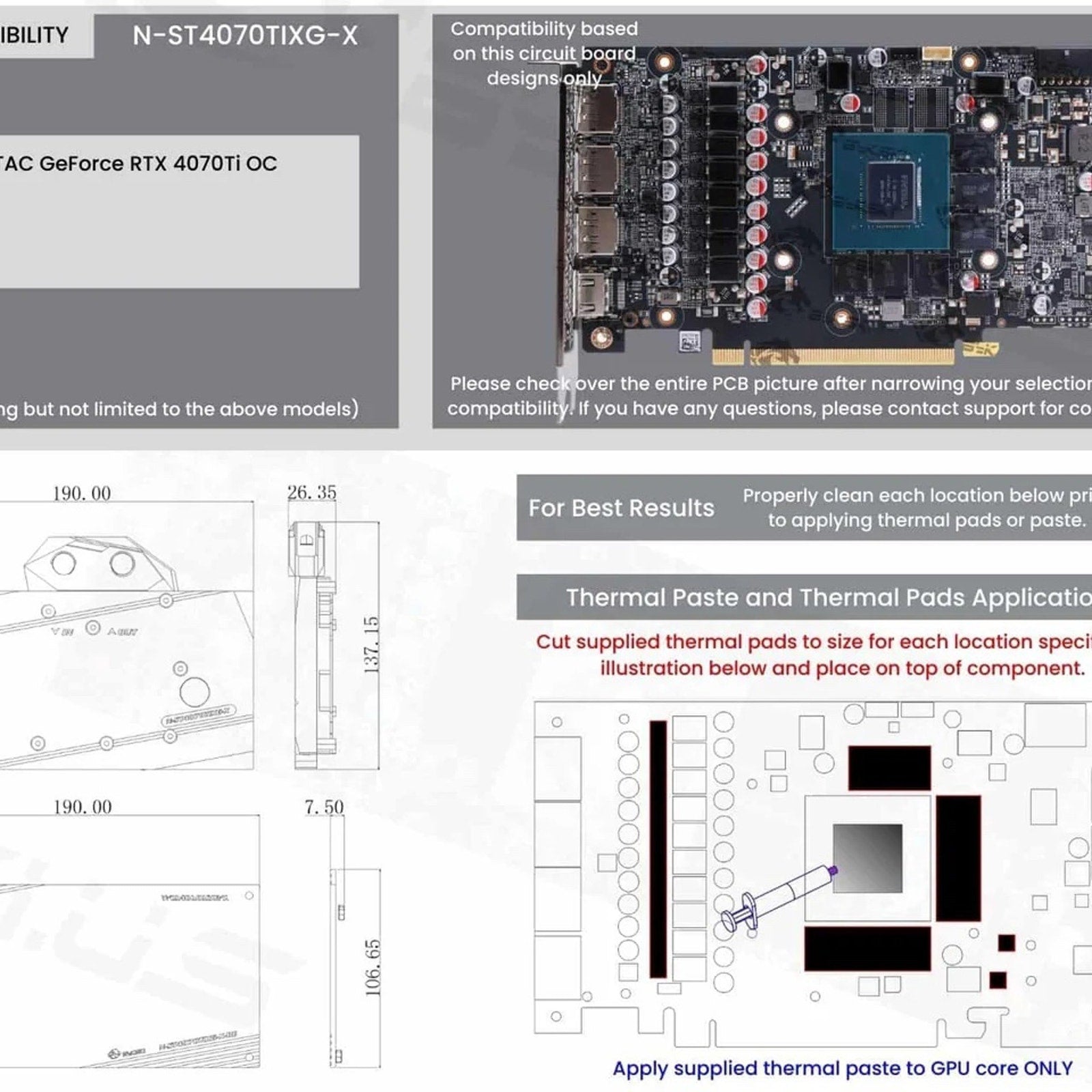 BYKSKI FULL COVERAGE GPU WATER BLOCK & BACKPLATE FOR ZOTAC GAMING GEFORCE 4070TI OC (N-ST4070TIXG-X)Specifications
