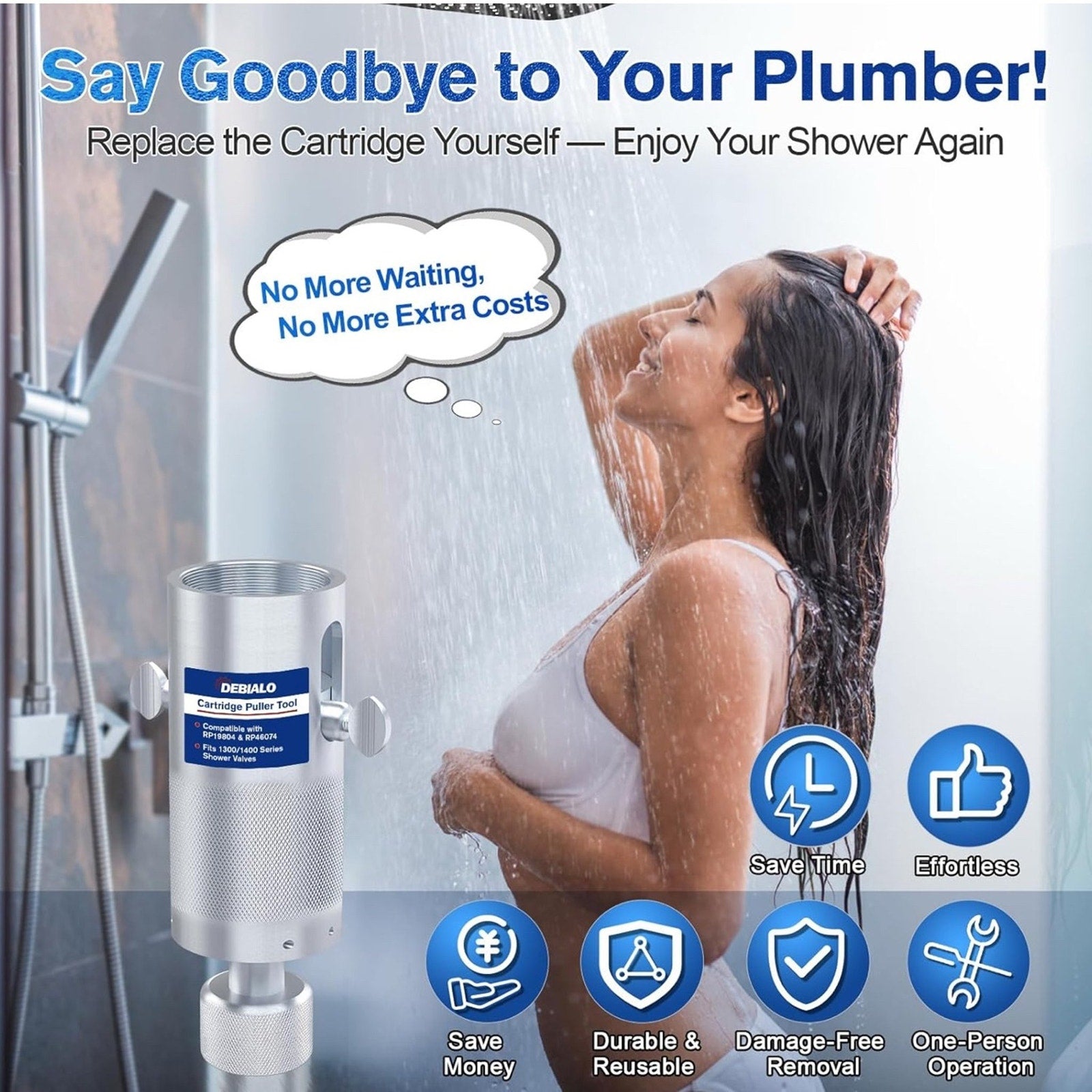 Cartridge Removal Tool for Delta Tub & Shower Faucets, Fits 1300/1400 Series RP46074 & RP19804 Cartridges, Heavy-Duty Reusable Steel Puller Extractor, Damage-Free DIY Valve RepairQuick 2-Minute Removal: Easily remove stuck Delta 1300/1400 cartridges in under 2 minutes. Perfect fit for RP46074 and RP19804—no plumber or extra tools needed.