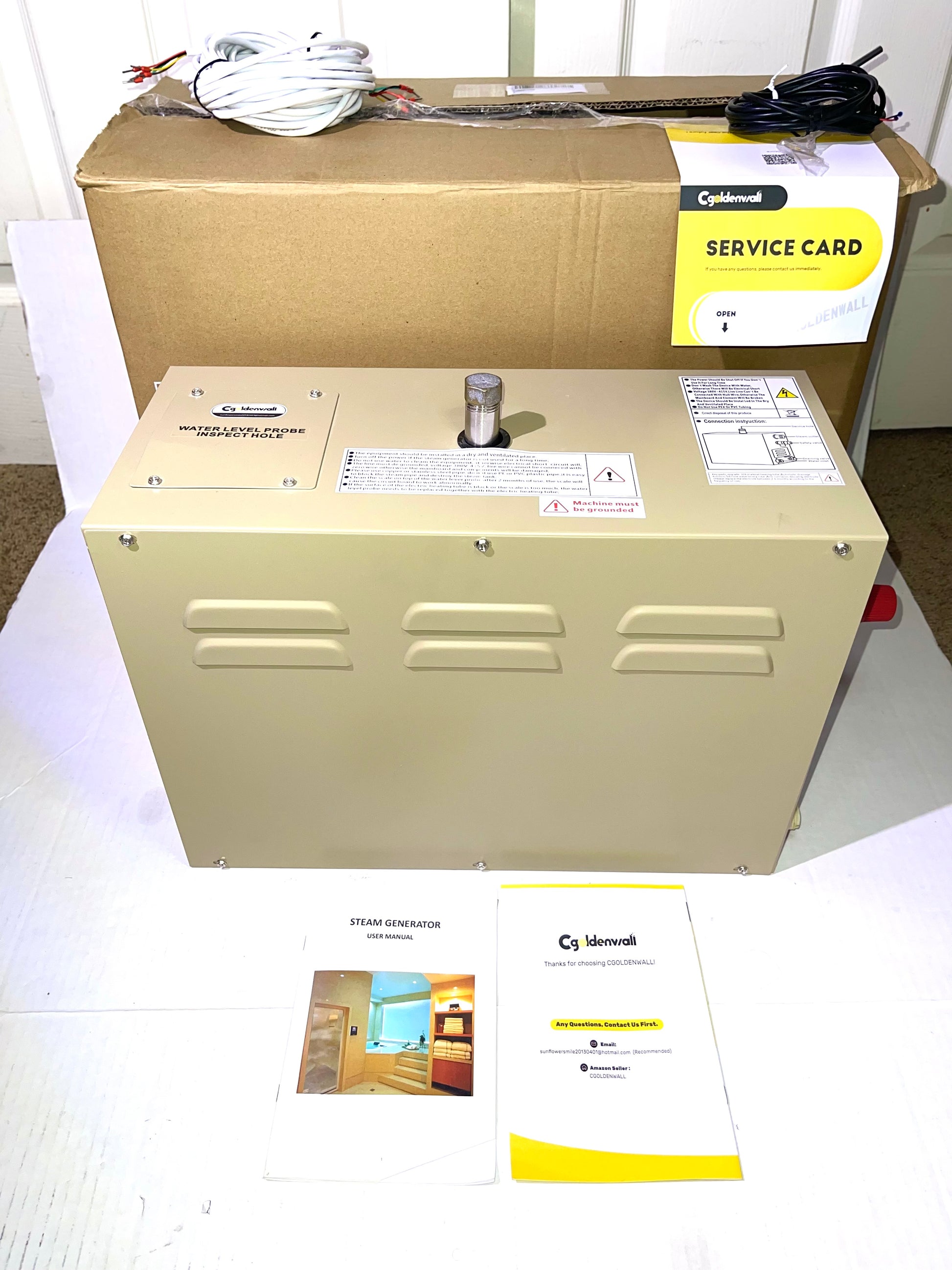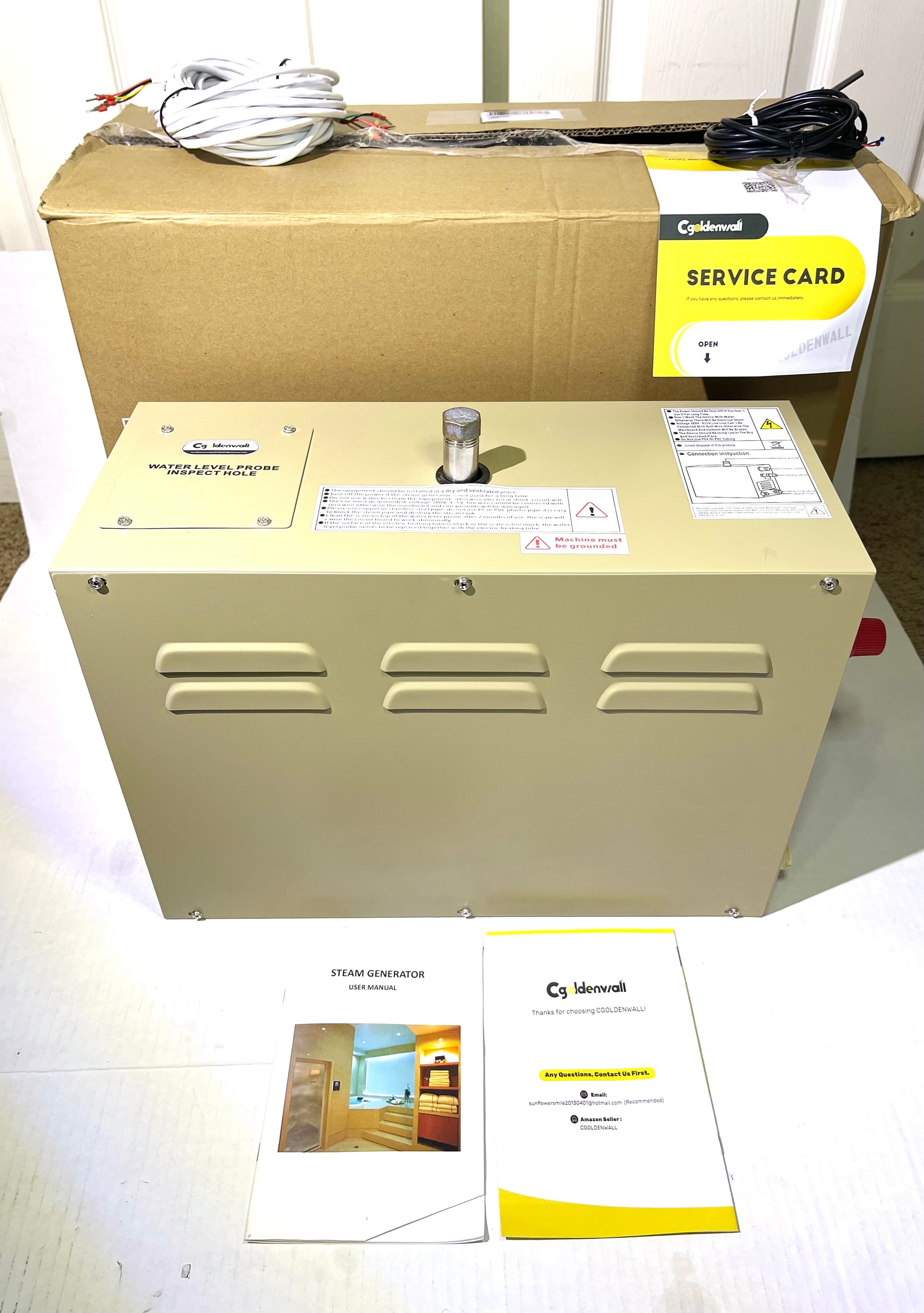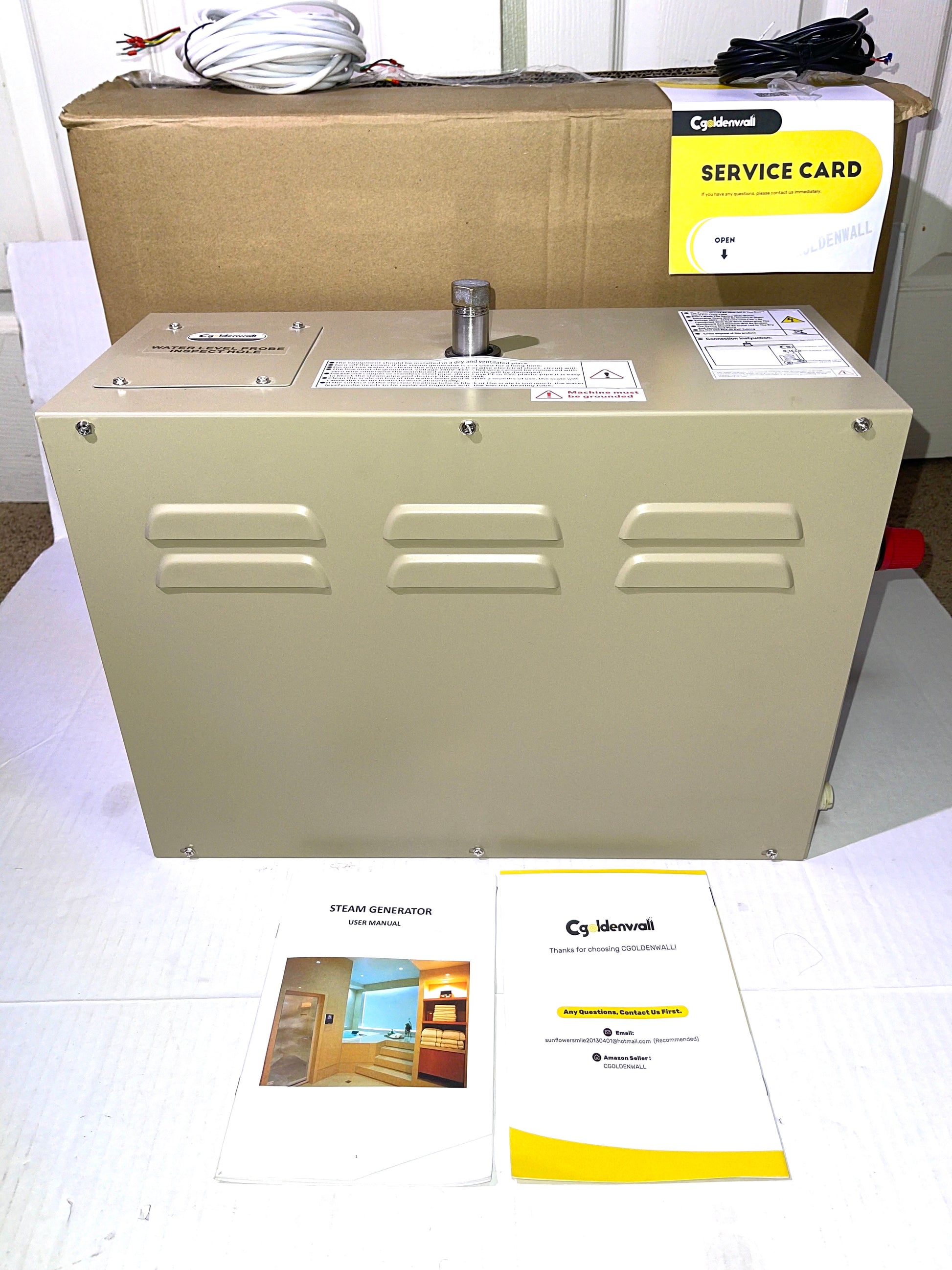 CGOLDENWALL 6KW Commercial Self-Draining Steam Generator Shower System Home Steam Bath Spa Generator 30 min to 12 Hours with Auto Drain 95-131℉ for Suitable Space Heating 6 m³/212 Cubic feet (6KW)
