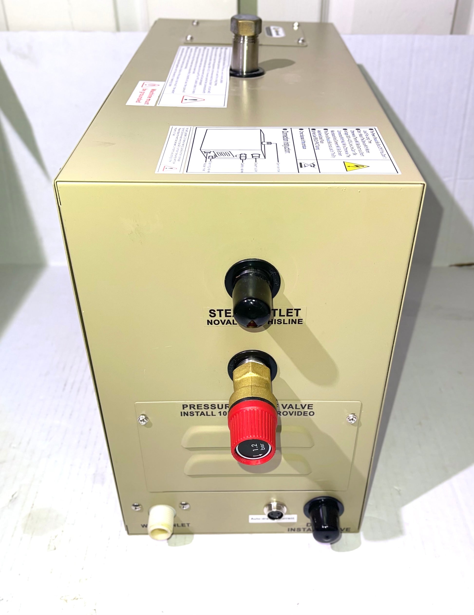 Note: not included- digital controller, steam nozzle, drain valve and safety valve
