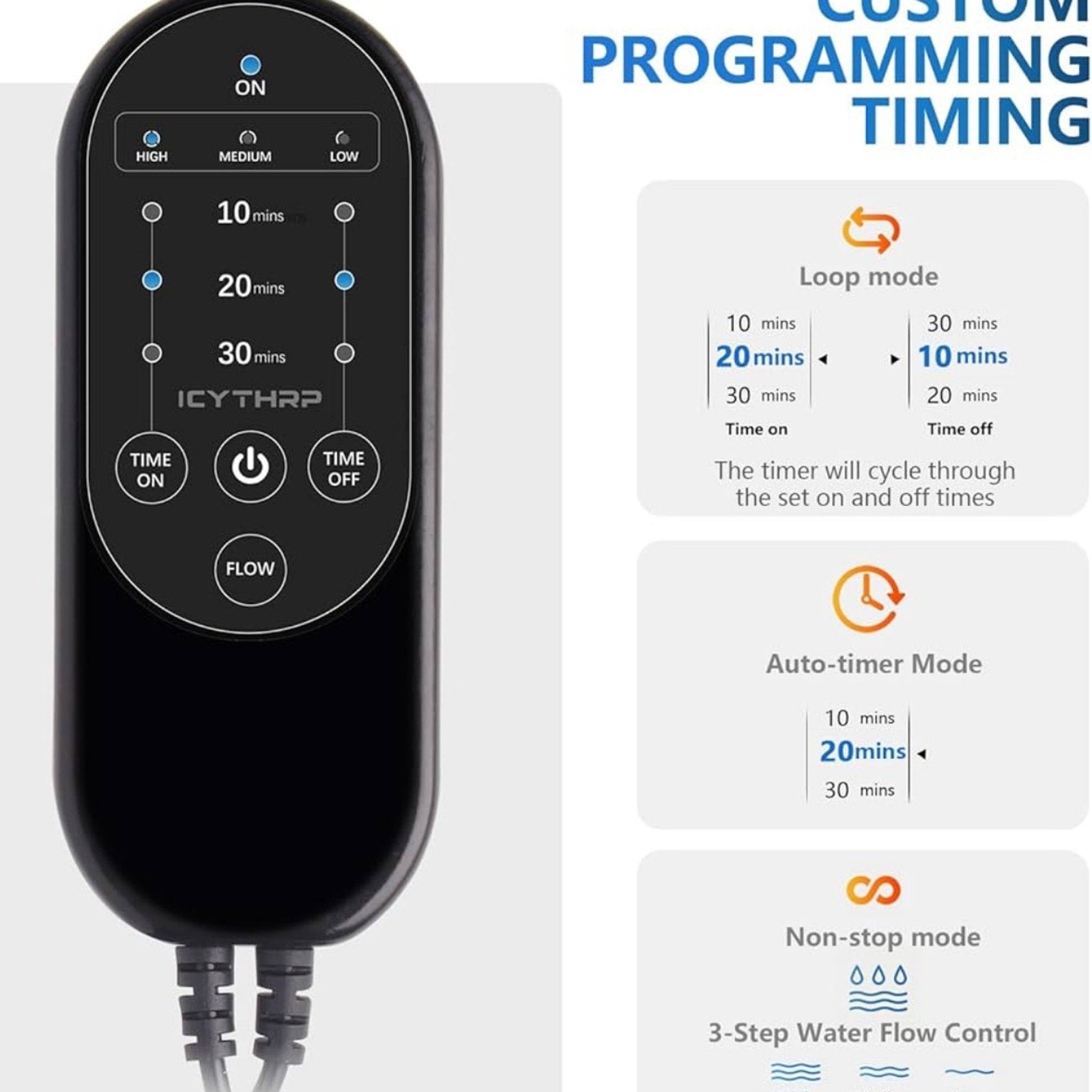 CUSTOMIZABLE CRYOTHERAPY: ICYTHRP cold therapy machine is equipped with a programmable timer. Our cold therapy machine will cycle on and off according to the time you set, day or night. Convenient and effective cold therapy is perfect for post-surgical pain management and relief, and there's no longer any need to worry about the safety of falling asleep with your cold therapy machine on.
