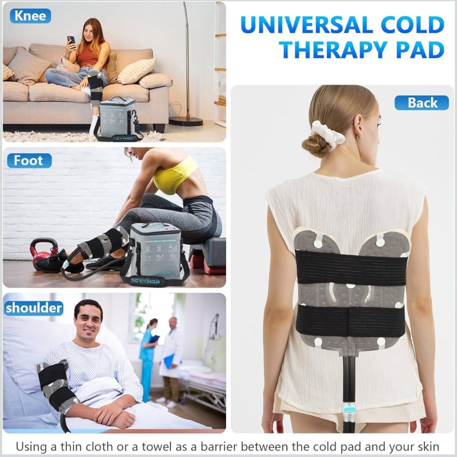 Cold Therapy Machine with Programmable Timer, Portable Ice Machine for Knee After Surgery, Knee Replacement Recovery System for Pain Relief w/Compression Pad for Shoulder, Hip and AnkleICE THERAPY RELIEF PAIN: Do you have pain after knee surgery? Say goodbye to pain and swelling. ICYTHRP ice machine for knee after surgery to relieve localised pain and swelling after surgery or injury by providing a soothing, constant circulation of cold water. Don't let pain hold you back any longer.