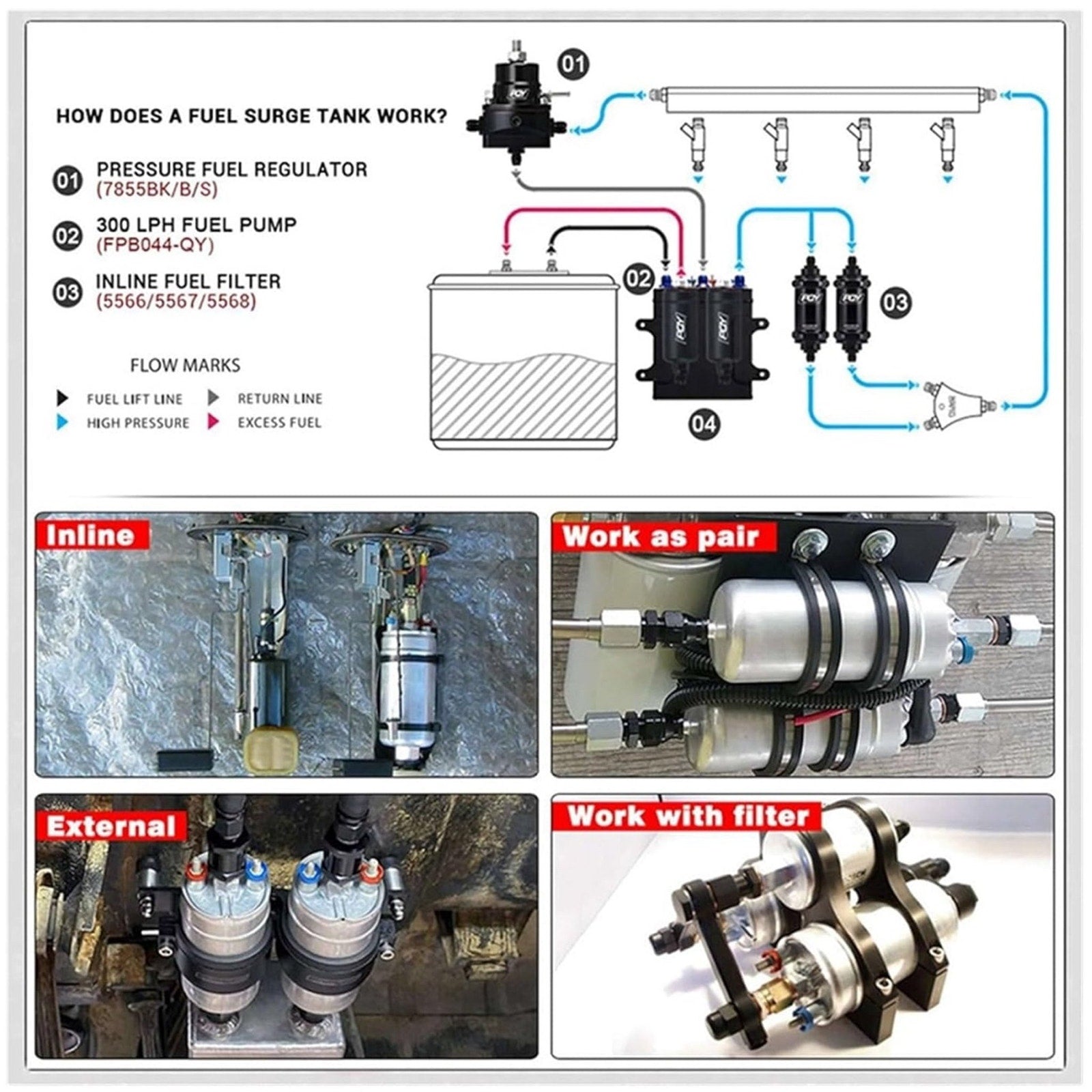 External Fuel Pump Low Pressure Lift Fuel Pump Toyota Nissan Racing 0580 254 044 Poulor 400LphHigh pressure fuel pump: Used in some modern high pressure direct injection engines.