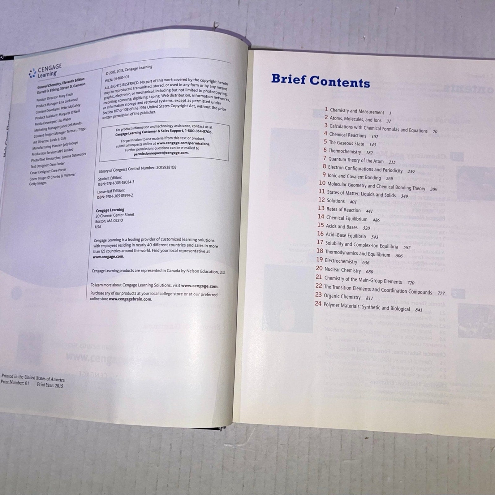General Chemistry - Standalone book by Ebbing & gammon 11th Edition ISBN-13: 978-1305580343, ISBN-10: 1305580346