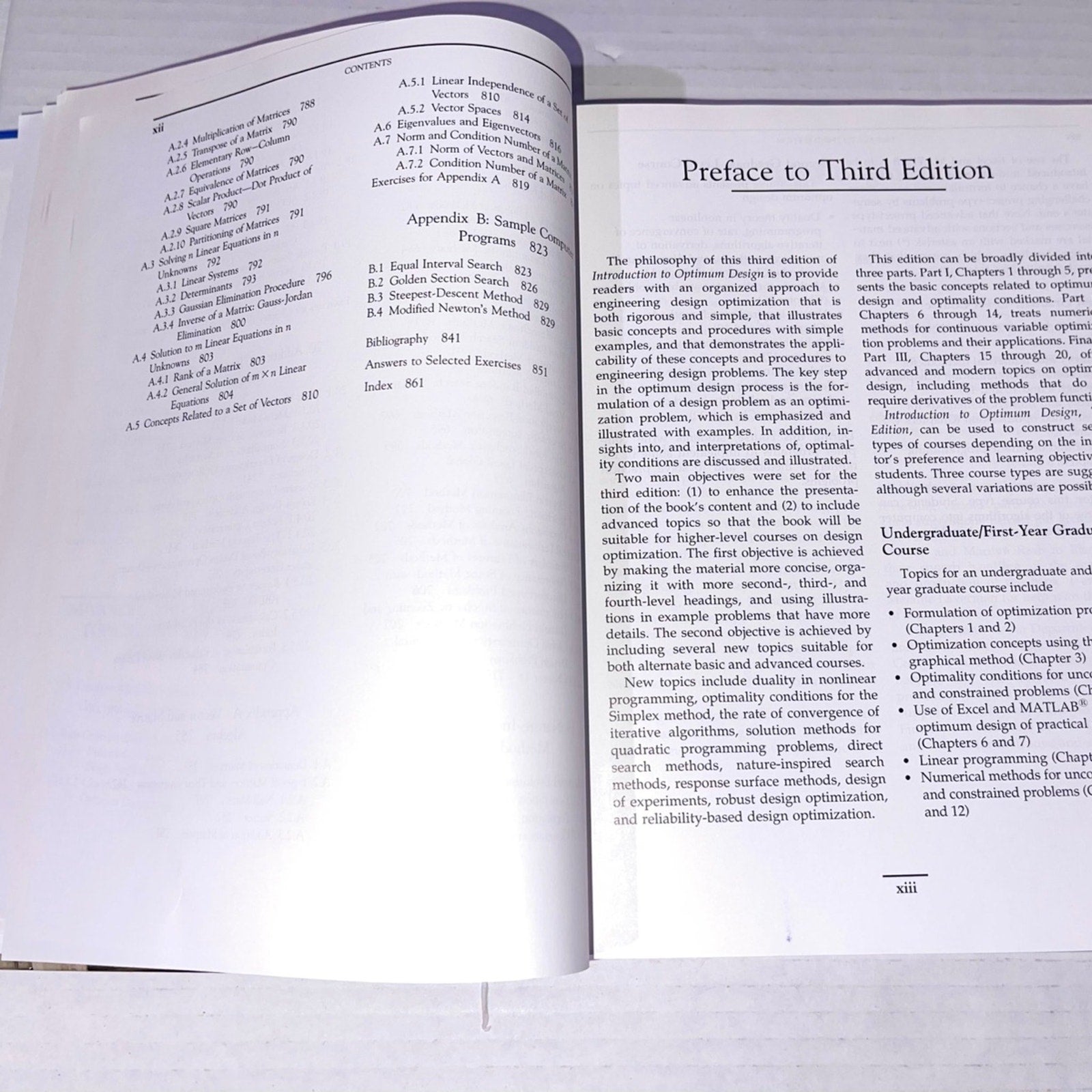 Introduction to Optimum Design 3th edition Jasbir S. AroraIntroduction to Optimum Design is intended for use in a first course on engineering design and optimization. Virtually any problem for which specific parameters need to be determined to satisfy constraints can be formulated as a design optimization problem. The concepts and methods described in the text are quite general and applicable to all such formulations. Inasmuch, the range of application of the optimum design methodology is almost limitless, constrained only by the imagination and ingenuity of the user. Throughout the text, simple design problems involving two to three design variables and three to four constraints are solved in detail to illustrate fundamental concepts and basic ideas. The necessary results from optimization theory are stated and their implications are studied through application to engineering design problems. Theory and concepts of optimum design are explained only through examples and simple engin
