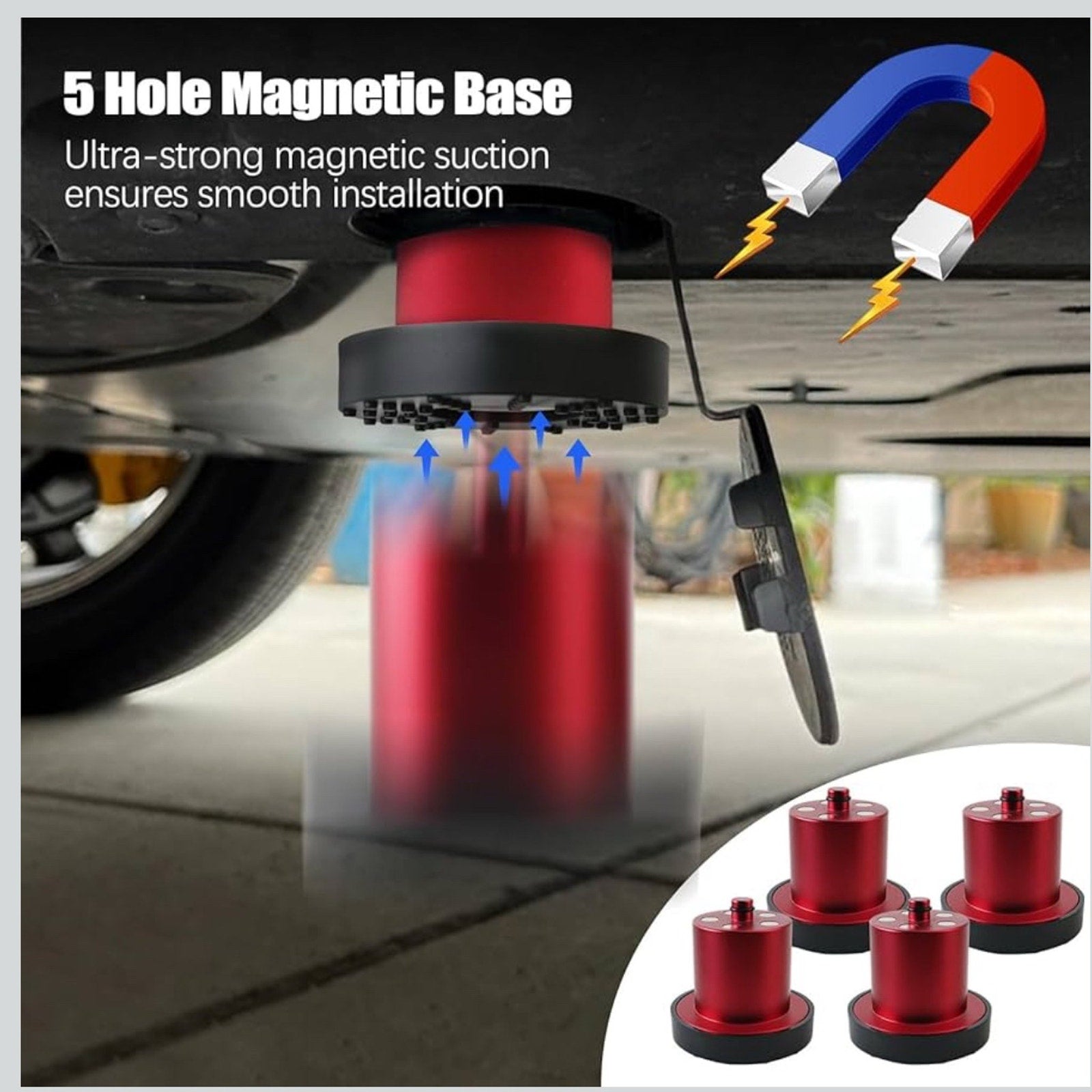 Unique Design: The 5-hole magnetic base ensures that the jack lift adapter stays in the correct position when lifting the vehicle. This makes height adjustment simple and allows for easy stacking for different needs. The frosted coating makes the jack pads more durable and better textured, less likely to leave scratches, and avoids falling off when in use.