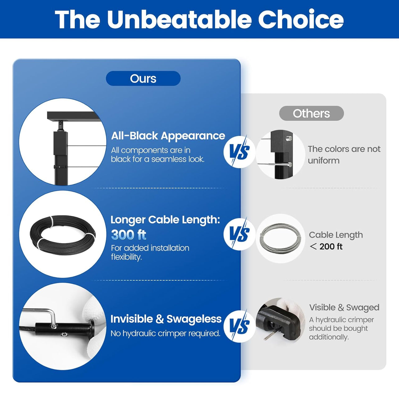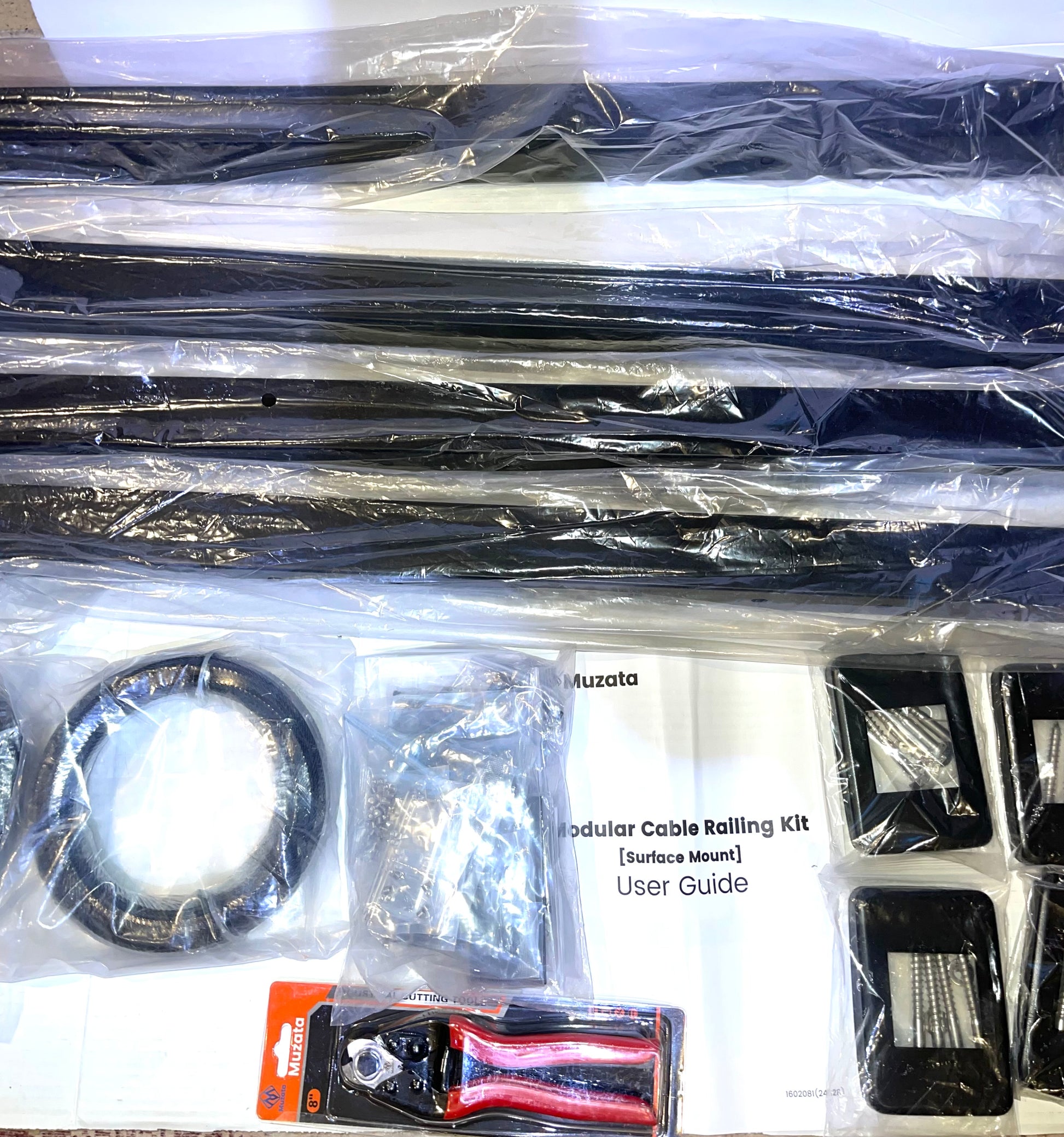One Purchase, Complete Solution: Get a comprehensive solution with just one purchase! 15-20ft Modular 36" Cable Railing Post Kit includes 4pcs Cable Railing Posts PS01, Swageless Invisible Cable Railing Kit CB05, Adhesive Washers CR66, Wire Rope WR19 and Cable Cutter CR12. Please note: handrail not included. If you need one, pls search for Muzata HT10