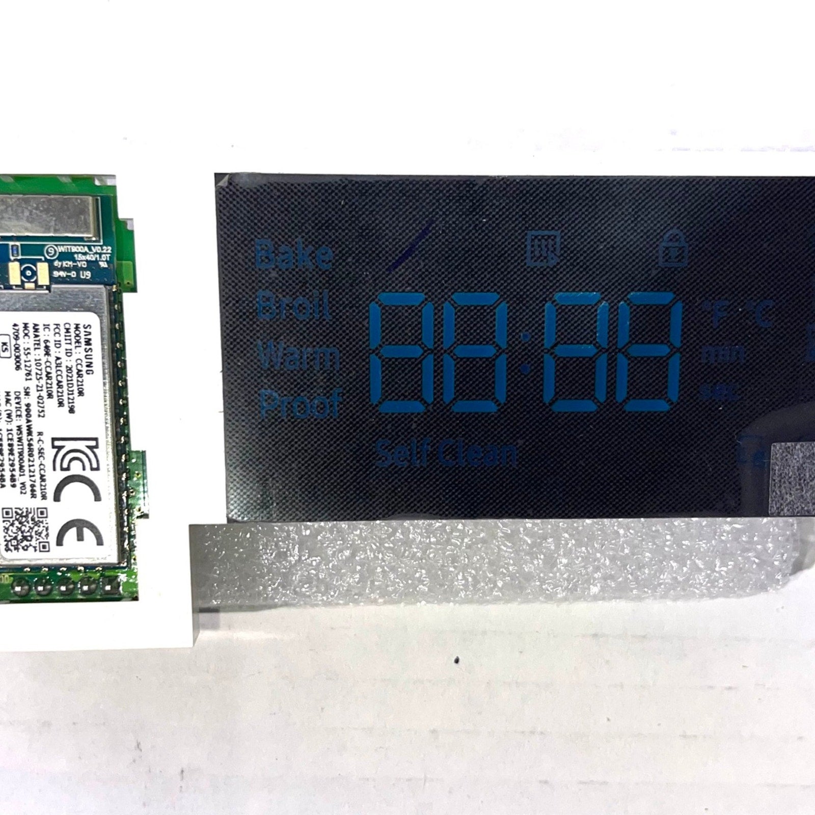 The Samsung DG92-01232C Range Control Board + Module Display, PBA receives signals from the control board and displays the time and temperature settings