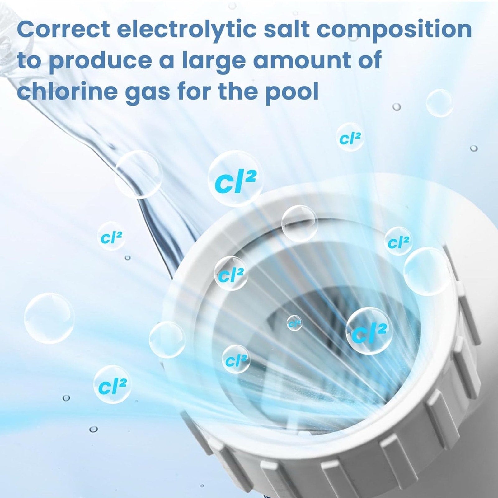 Advanced Electrolysis for Softer, Gentler Water】 Utilizing smart electrolysis technology, this salt cell generates natural chlorine that creates silky-smooth water. Say goodbye to harsh odors, eye irritation, dry skin, and hair damage—enjoy a more comfortable and family-friendly swimming experience.