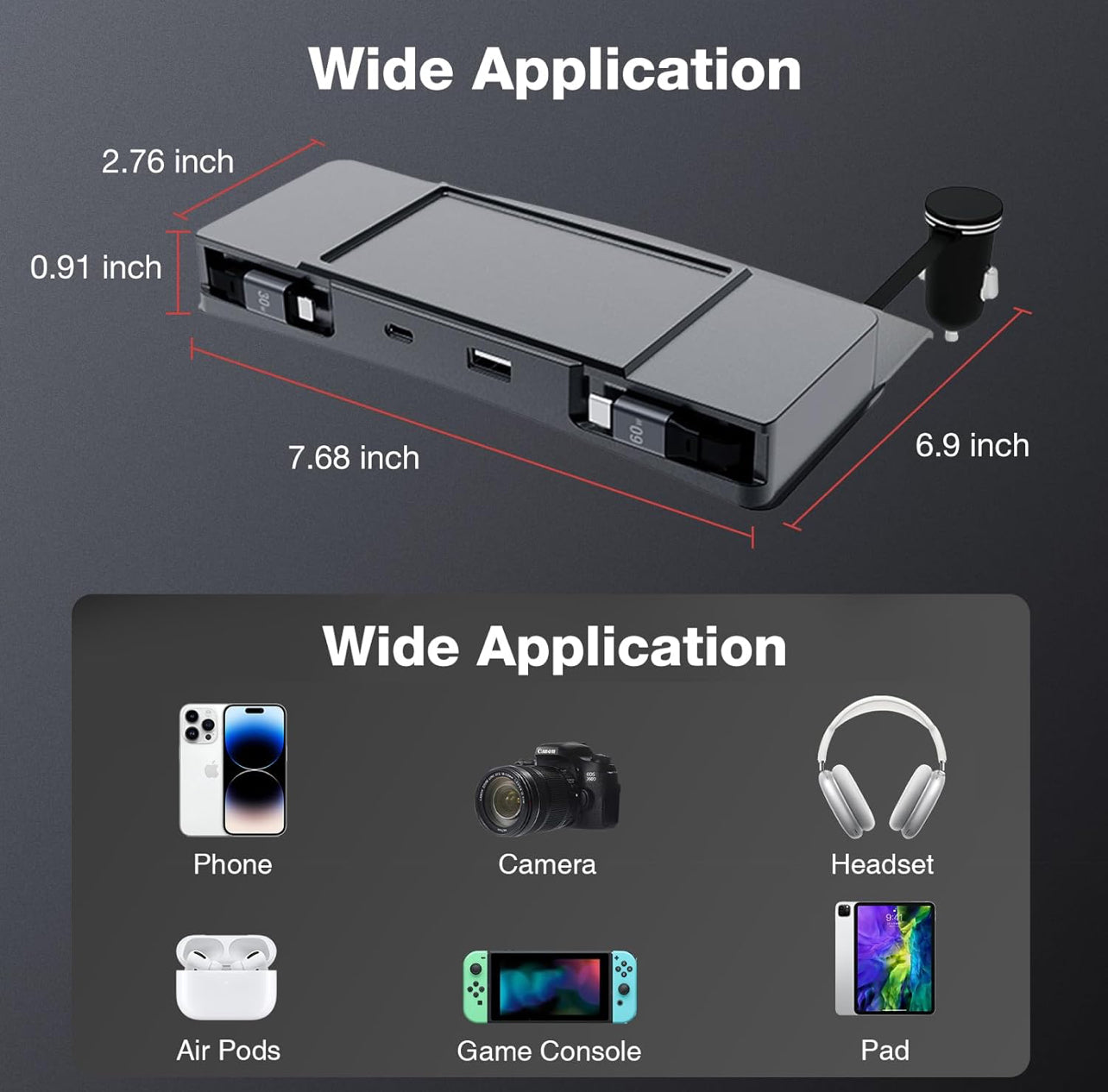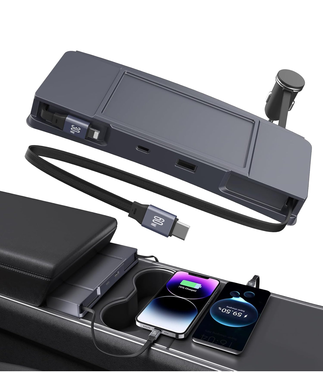 Retractable Center Console USB Hub for Tesla Model 3 Model Y 2021 2022 2023 2024, THELIFELICIOUS Interior Accessories Car Phone Charger, Fast Charging Docking Station