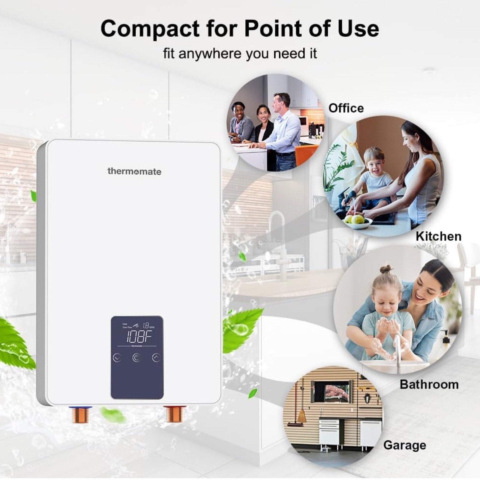 Sleek Compact Size - 10.95" x 7.4" x 2.52", Small water heater fit in tight places within your home or business, like under cabinets and sinks, hair salons, bar counters and hotel receptions, saving va