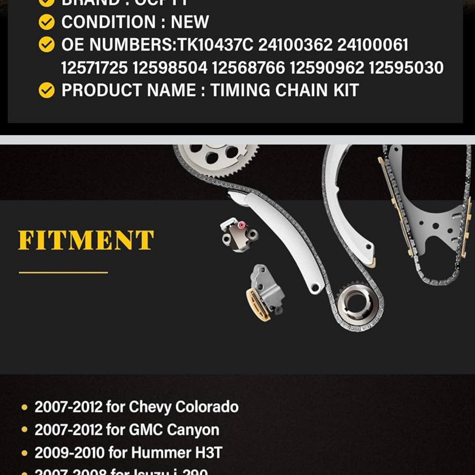 OCPTY Timing Chain Kit for 2007-2010 for Chevrolet for GMC for Hummer for Isuzu Colorado Canyon H3 H3T i-290 i-370 3.7L 2.9LNOTE: view red circles in stock photo of missing pieces.