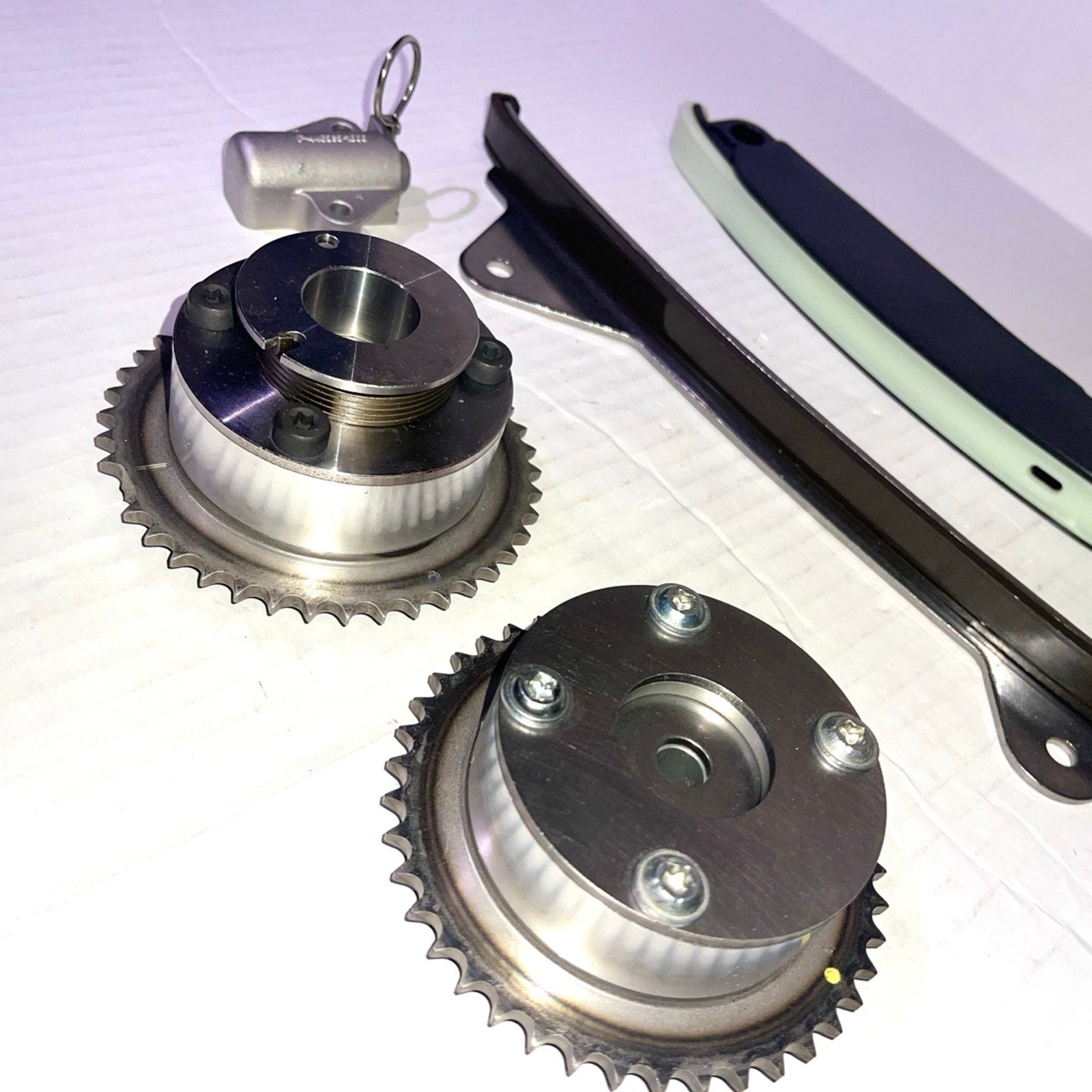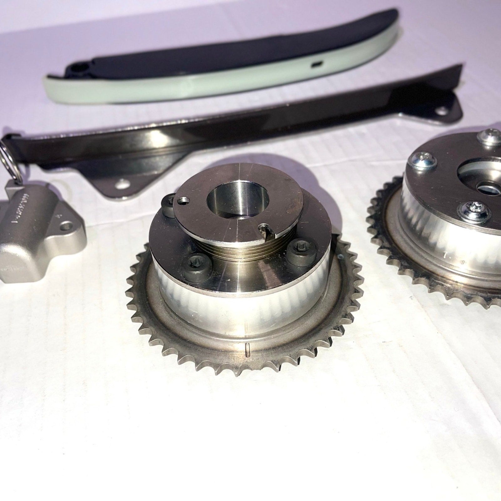 Package Include, timing chain tensioner, tensioner arm guide rail, timing chain guide rail, intake VVT gear sprocket, exhaust VVT gear sprocket