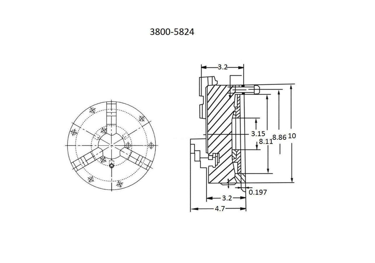 VERTEX 10" 3-Jaw Front Mount Lathe Chuck 2 Sets Of Jaws 10" Chuck Size 3800-5824