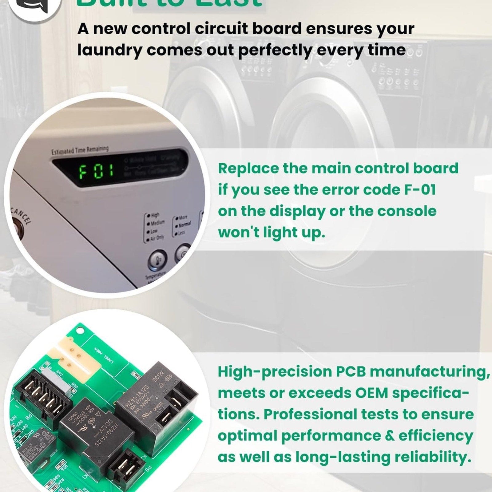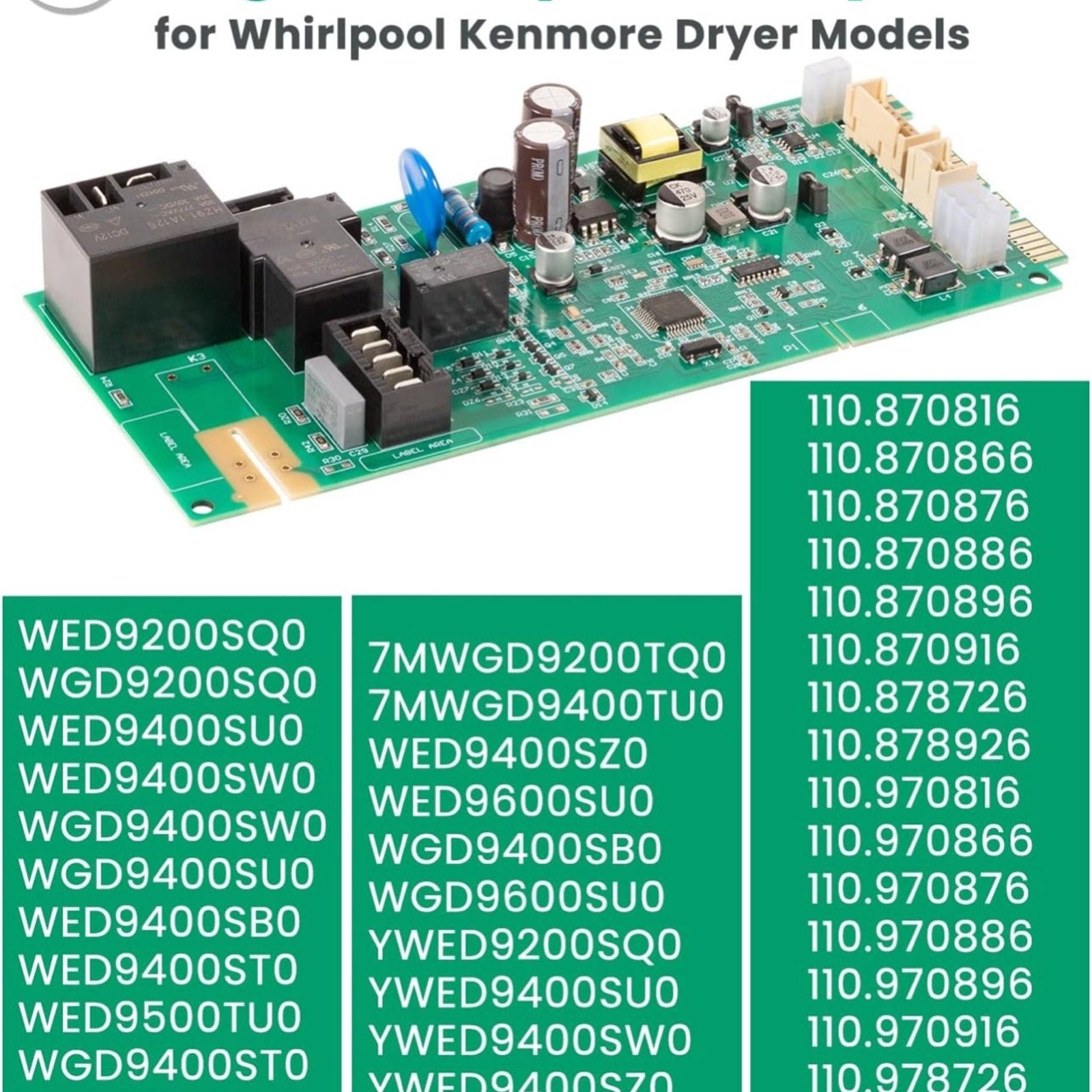 W10110641 Control Board for Whirlpool Kenmore Dryer Main Control Circuit Board Direct Replacement for OEM WPW10110641 AP6015062 1203065 PS11748333 W10110641R (No Protective Casing)Fits These Dryers — WED9200SQ0 WGD9200SQ0 WED9400SU0 WED9400SW0 WGD9400SW0 WGD9400SU0 WED9400SB0 WED9400ST0 WED9500TU0 WGD9400ST0 WGD9400SZ0; 110.870816 110.870866 110.870876 110.870886 110.870896 110.870916 110.878726 110.878926 110.970816 110.970866 110.970876 110.970886 110.970896 110.970916 110.978726 110.978926; 7MWGD9200TQ0 7MWGD9400TU0 WED9400SZ0 WED9600SU0 WGD9400SB0 WGD9600SU0 YWED9200SQ0 YWED9400SU0 YWED9400SW0 YWED9400SZ0.