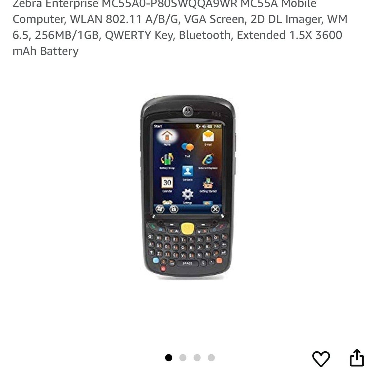 Zebra Motorola Mobile Computer MC55A0-P80SWQQA9WR MC55A, WLAN 802.11 A/B/G, VGA Screen, 2D DL Imager, WM 6.5, 256MB/1GB, QWERTY Key, Bluetooth, Extended 1.5X 3600 mAh Battery MRSP: $1,056.90NOTE: CHARGER BASE INCLUDED & UNIT TESTED